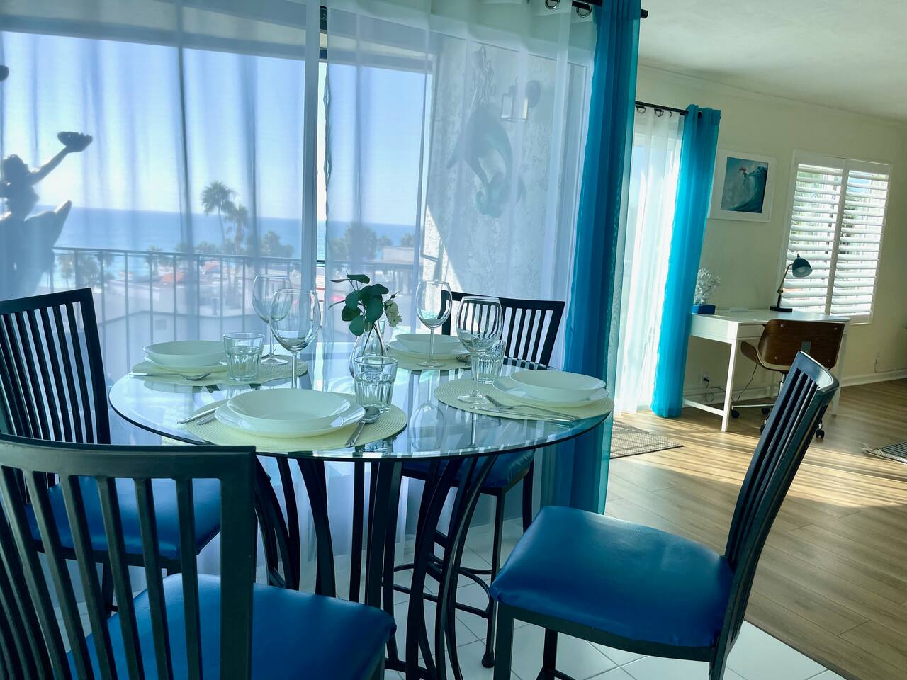 Welcome to SurfView Vacation Rental in San Clemente, California! This listing combines two adjoining units—a one-bedroom suite and a studio—connected by an interior door. You’ll have a full kitchen, a kitchenette in the studio, two full bathrooms, two queen beds, and a pull-out sofa in the living room. Enjoy breathtaking sunsets from your private balcony. Prime location offers easy walking access to the beach and the charming Del Mar Street, lined with restaurants, cafés, and boutique shops.